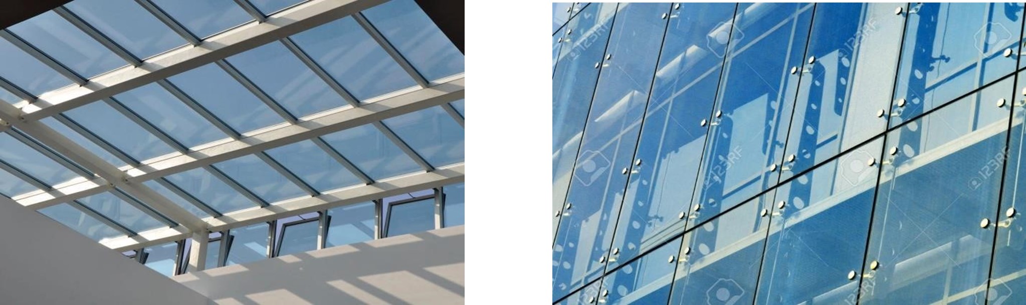 3 أشكال أنماط لتثبيت الزجاج : واجهات ((curtain wall يظهر بها الالومنيوم من الخارج ، وحدات (structural) لا يظهر بها الالومنيوم من الخارج ، و يمكن الدمج بين النمطين بظهور أحد القوائم أو العوارض من الخارج .